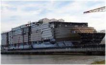 En la web de Royal Caribbean se aprecia una foto donde se ve parte del preensamblado que incluso en días de nevadas no ha parado sus actividades.