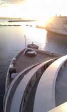 La diferencia es que navegando, si escucho cualquier ruido que me despierta miro la hora... y automáticamente salto como un muelle para hacer alguna foto del amanecer o simplemente dar un paseo por cubierta para aprovechar la luz noctura para las fotos del crucero.