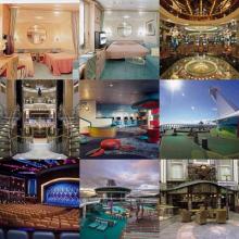 El desplazamiento por las cubiertas se puede hacer con los avanzados y veloces ascensores cristalinos que hay en su interior que nos permitirán ir de la cubierta más baja a la más alta, 16 pisos, en un abrir y cerrar de ojos. Ahora bien, si eso de los ascensores no te hace mucha gracia, puedes subir o bajar por las elegantes escaleras de mármol, madera y cristal en la que saldremos hacía otros salones y cubiertas de la embarcación.